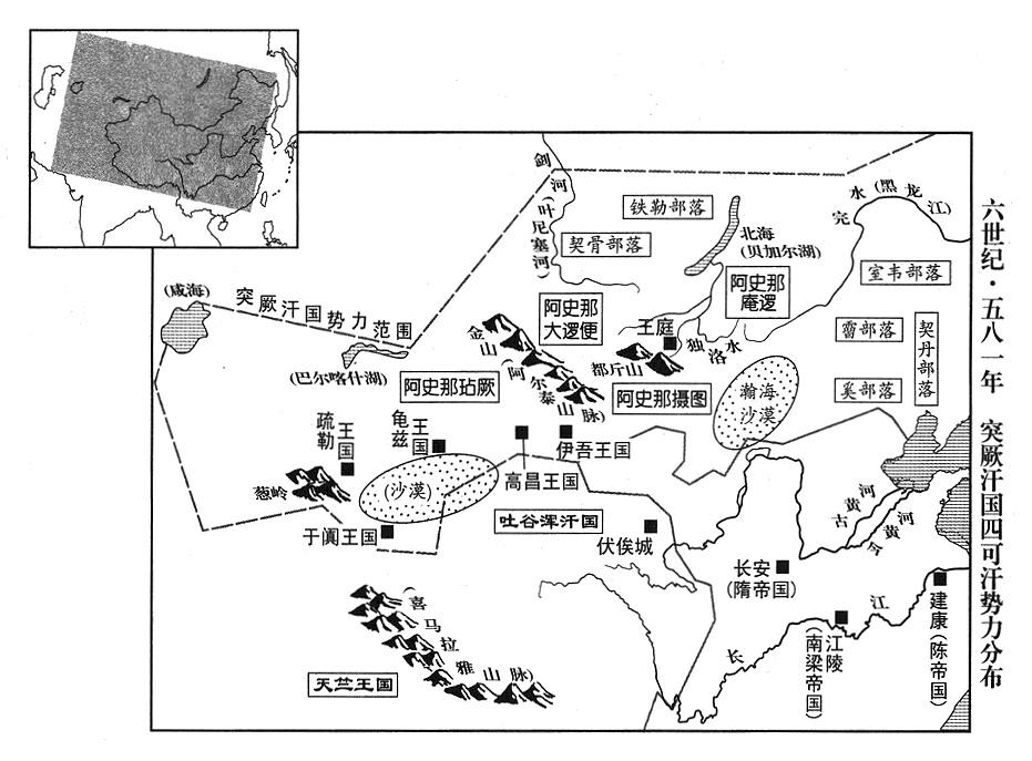5、突厥汗国(瀚海沙漠群)沙钵略可汗(六任大可汗)阿史那摄图,派他的儿子到隋帝国进贡,顺便请求隋帝杨坚准许突厥部落可以在恒州(故北魏帝国恒州·山西省大同市)、代州(广武·山西省代县)一带狩猎。杨坚允许,仍然派人赏赐他美酒饮食,阿史那摄图率部落叩头领受。