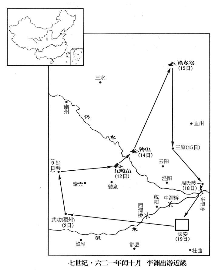 78、闰十月二日,唐帝李渊前往稷州(陕西省武功县西)。