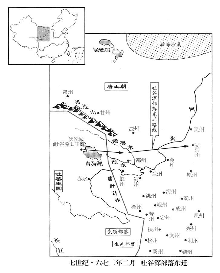 3、二月八日,将吐谷浑各部落迁到鄯州(青海省乐都县)浩亹水(大通河)之南。各部落畏惧吐蕃王国(首都逻些城“〔西藏拉萨市〕”)的强悍,不敢安居,而且鄯州牧地又少,所以,不久,唐政府再把他们迁到灵州(宁夏灵武市),另设安乐州(羁縻州·宁夏中宁县)管理,命末任(十九任)可汗慕容诺曷钵当州长。吐谷浑故国疆土遂全部并入吐蕃王国版图。