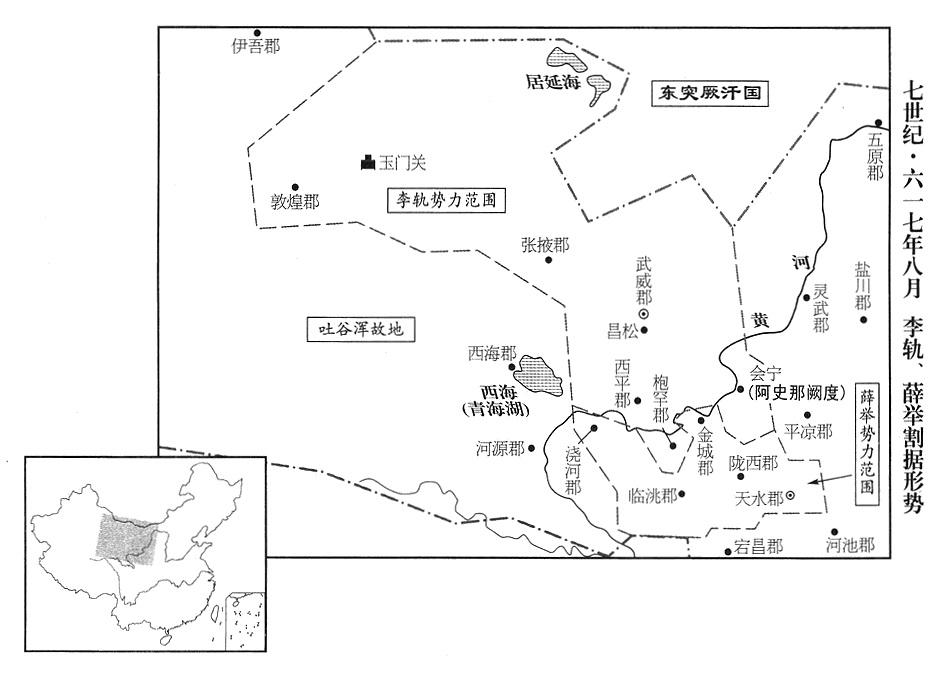 2、灵武郡(宁夏灵武市)变民首领白瑜娑抢夺政府牧马场的马匹,联合北方的东突厥汗国(瀚海沙漠群)。陇右(陇山以西)地区很多地方受到劫掠,称之为“奴贼”。